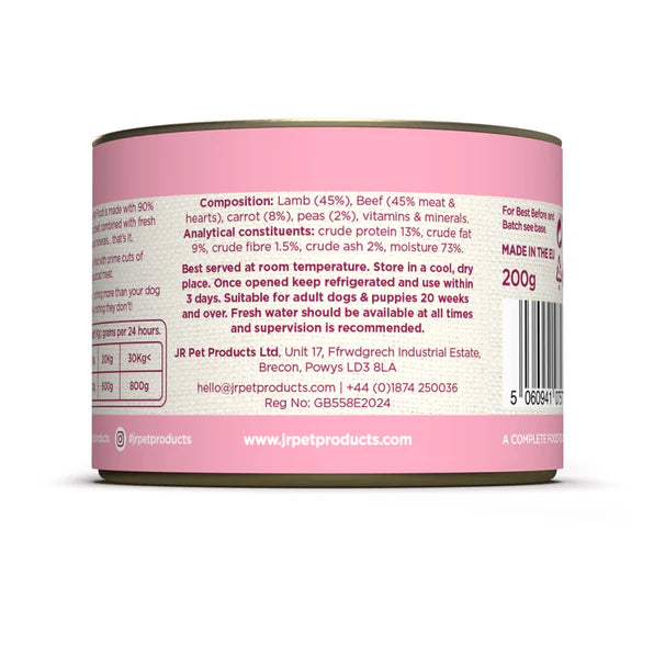 Most “grain-free” wet foods sneak in starchy fillers — potato, pea flour, gums. JR skips all that. This is pure lamb and beef, simple veg, essential vitamins/minerals, and nothing else.